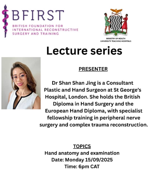 Chihena Banda, is the chief of the plastic surgery unit in Lusaka, Zambia, which is building a curriculum in Hand Surgery with BFIRST.