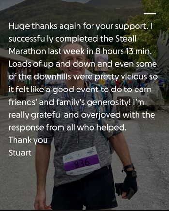 This month Stuart Watson completed the Steall Marathon to fundraise for BFIRST